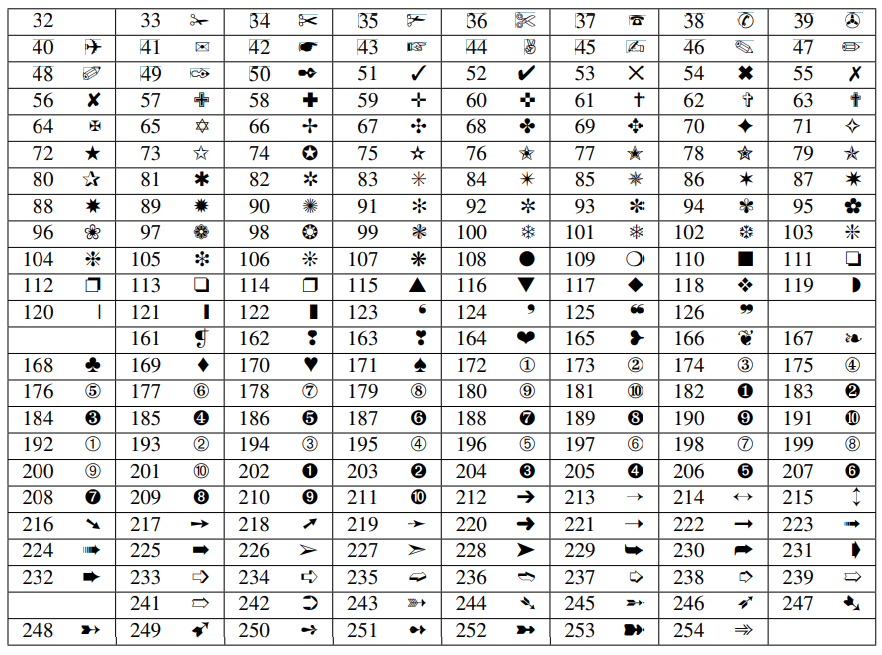 사용할 수 있는 bullet 의 종류는 다음과 같다.